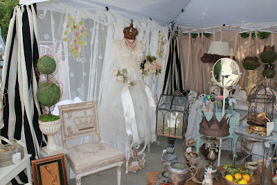 As we are getting to meet and know more and more of you who share our passion for great finds, unique style and the love of decorating - I thought I would give a little peek inside of where my girls and I get to call home for this year- Denise's amazing and eclectic house. For those of you who know her, you already know each room in Denise's home has a theme and she is constantly adding to, changing and recreating her spaces. Most of these photos were actually taken a few years ago, but I still thought you may like to see some of her great ideas for decorating. She hopes to take time in the future to blog about specific designs and techniques, so be sure to look for those blogs. The above photos is of a side courtyard. The gold ball chairs were purchased at an estate sale and she made the black and white stripe cushions. The ivy diamond wall is one of her most successful projects. Measuring the long wall, stretching thin wire into a diamond pattern, and waiting 2 years for the ivy to climb has been a labor of love, but well worth the wait!
